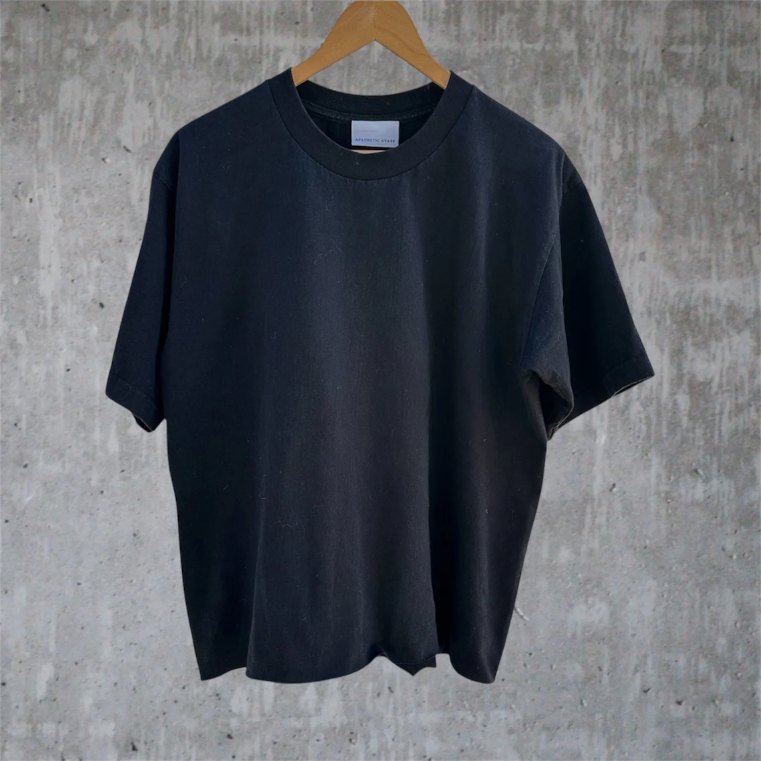 Apathetic State Woven Neck Label Tacked inside Neckline.